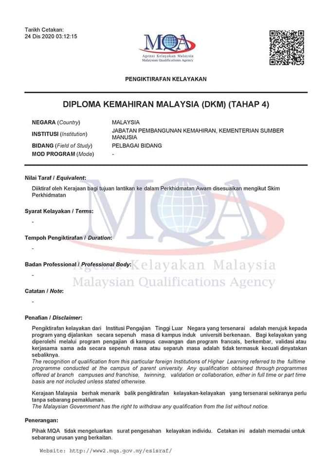 Keperluan Sijil Dkm Diploma Kemahiran Malaysia News Facebook